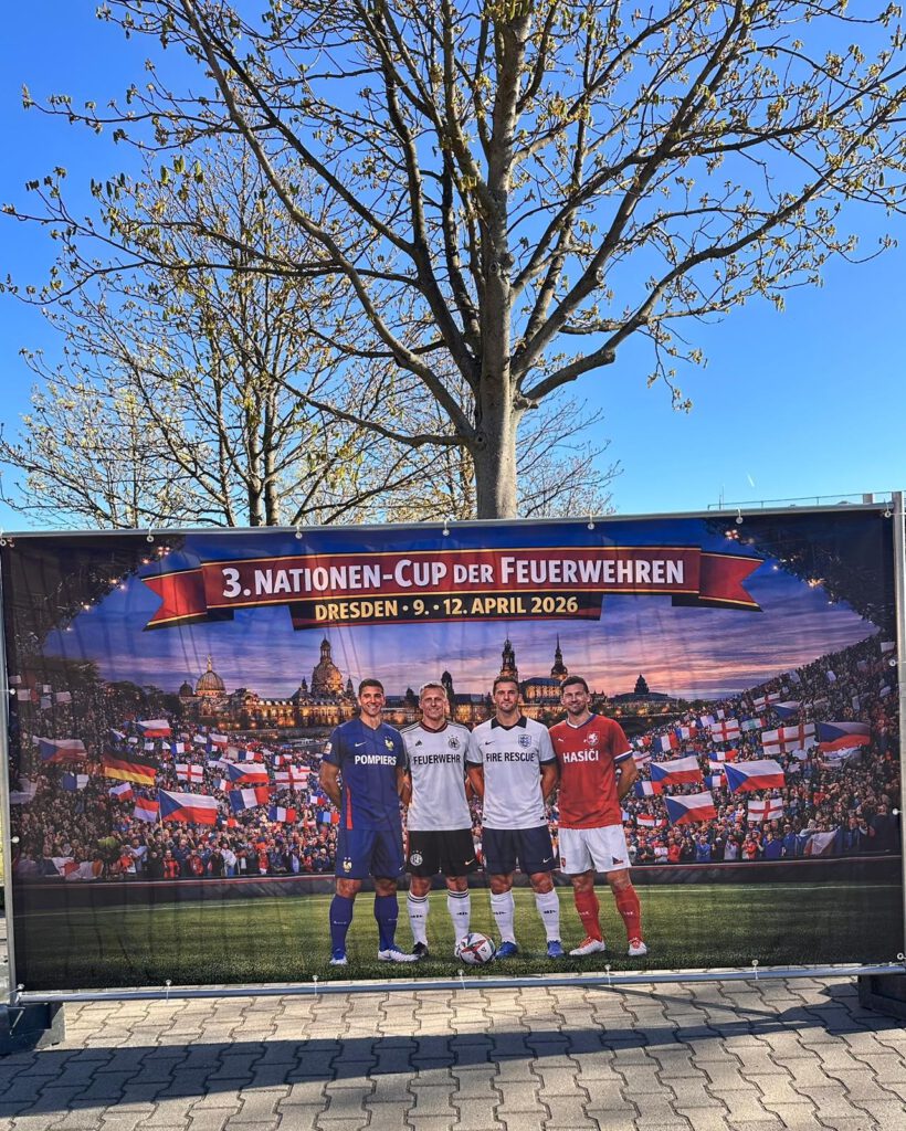 Vom 9. bis 12. April 2026 trafen sich in Dresden die Fußballnationalmannschaften der Berufsfeuerwehren aus Deutschland, Frankreich, Tschechien und dem Vereinigten Königreich zum Nation’s Cup 2026. Ausrichter des Turniers war die Berufsfeuerwehr Dresden.